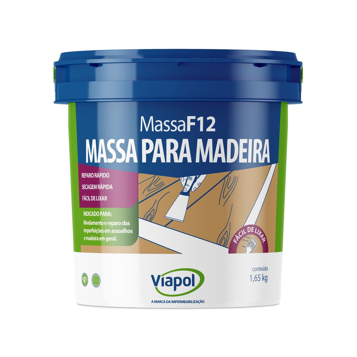 A Massa para Madeira Massa F12 Cumaru 1,65Kg Viapol é um produto nacional, com peso líquido de 1,650 kg e peso bruto de 2 kg. A embalagem tem 12,5 cm de largura, comprimento e altura. A massa é de cor Cumaru, ideal para combinar com diferentes tipos de madeira.