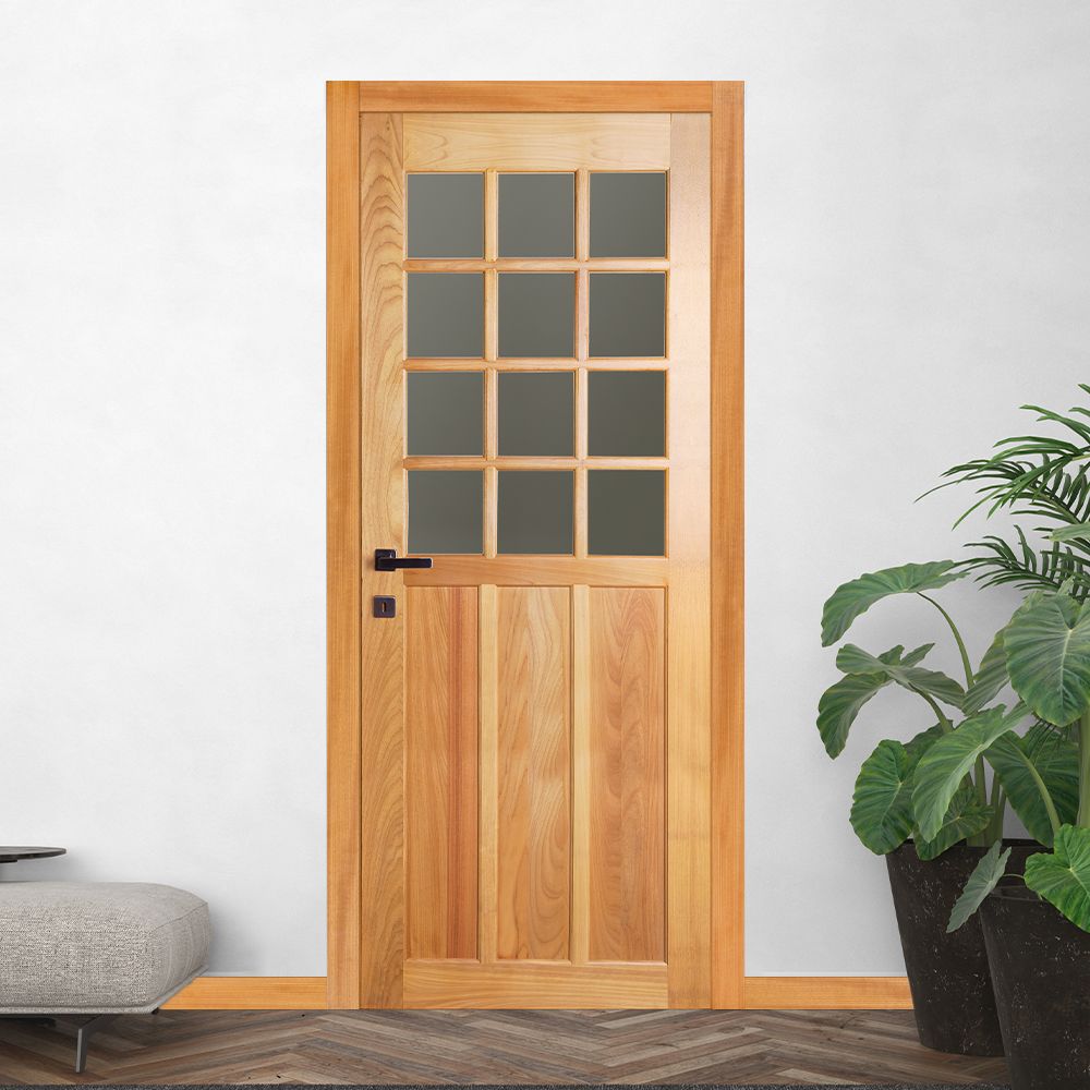 Porta Montada de Giro Madeira Macica Tauari Natural Direita 213x97,5x14cm Veneza Wood Glass