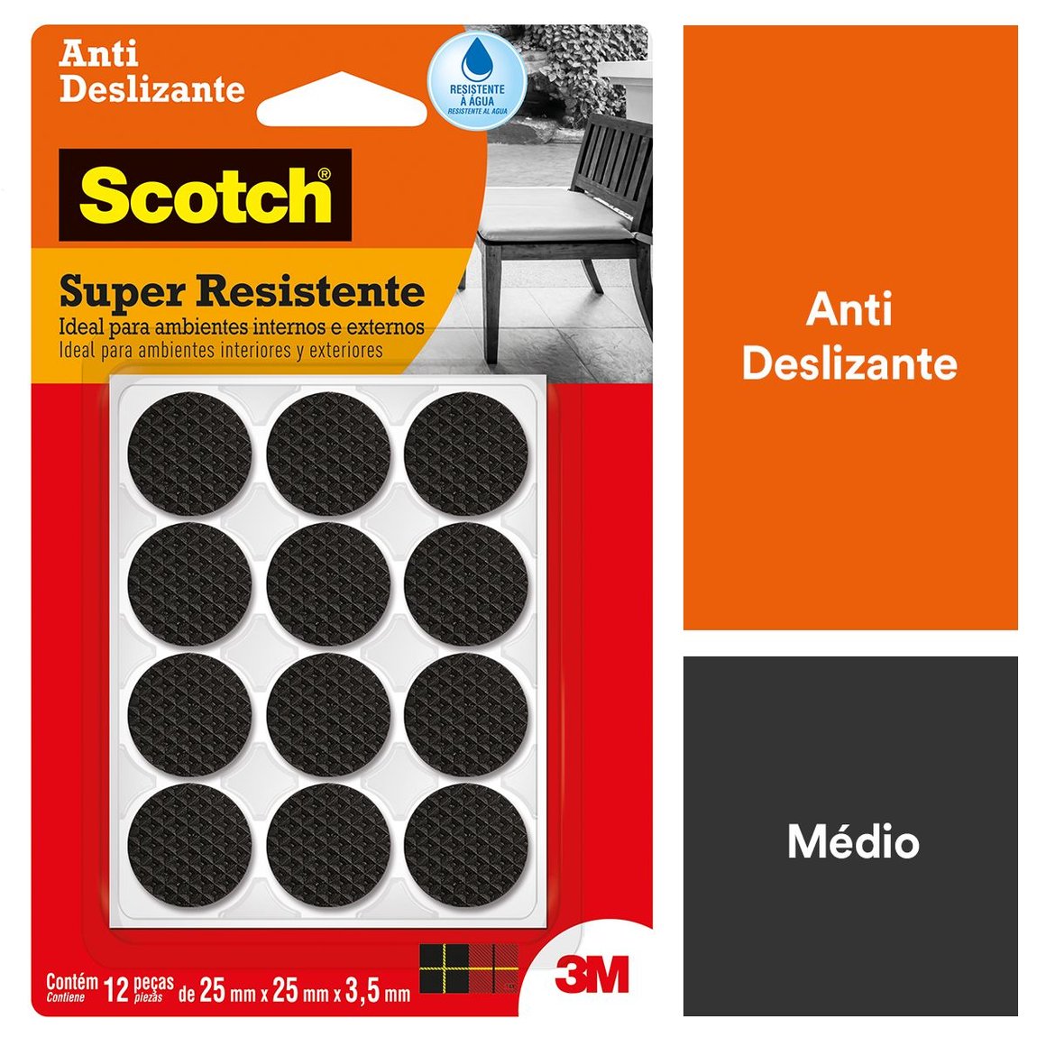 Protetor Anti Deslizante Redondo Preto Médio 12 Unidades 3M Scotch 3M