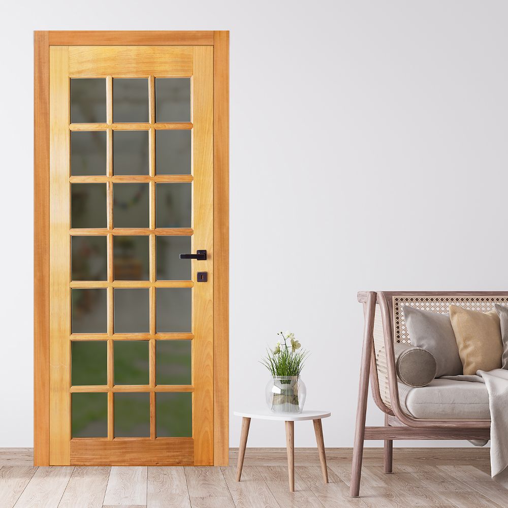 Porta Montada de Giro Madeira Macica Tauari Natural Esquerda 210x87,5x14cm AD Int Vd Wood Glass